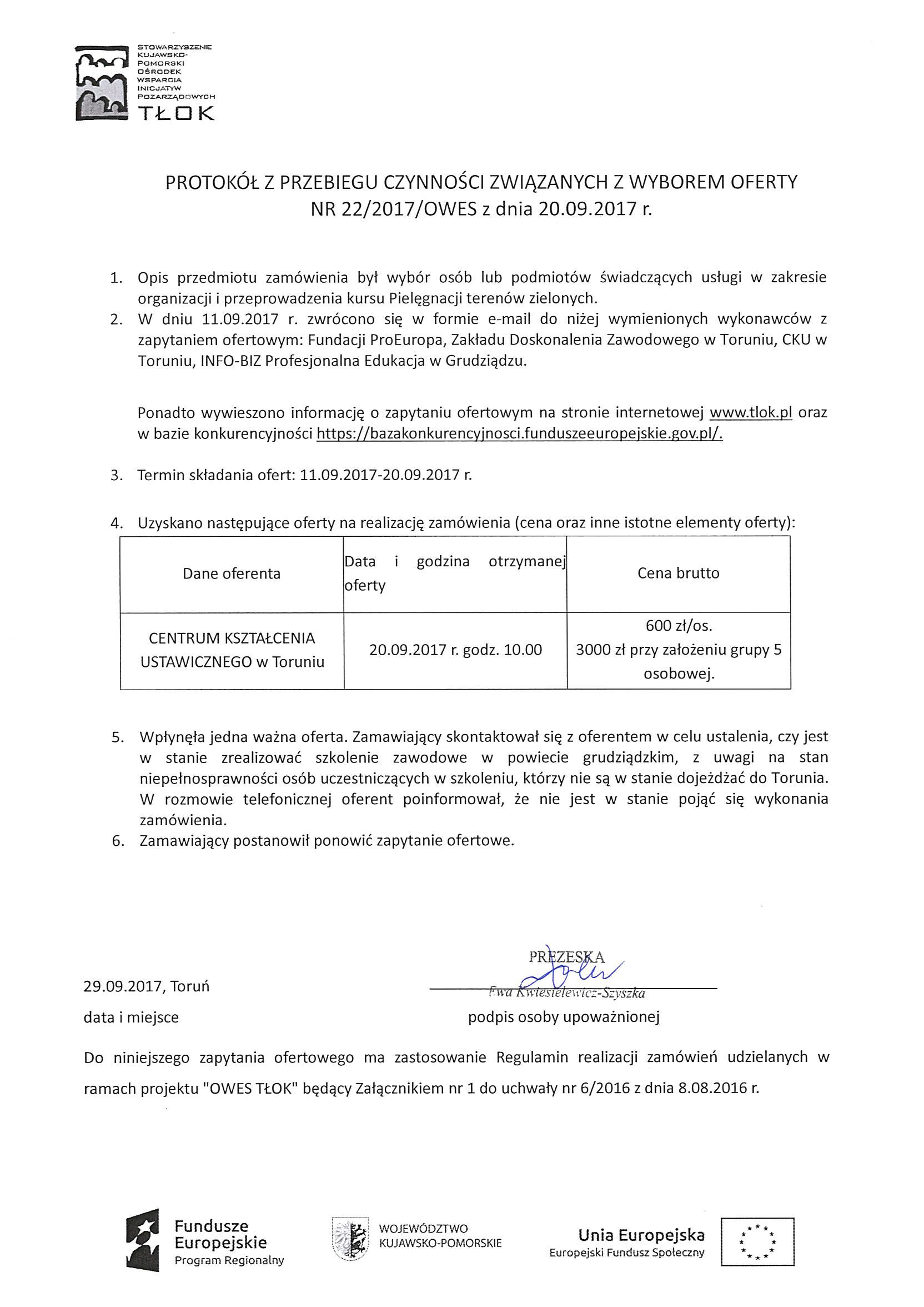 Zakończenie zapytania ofertowego nr 22/2017/OWES